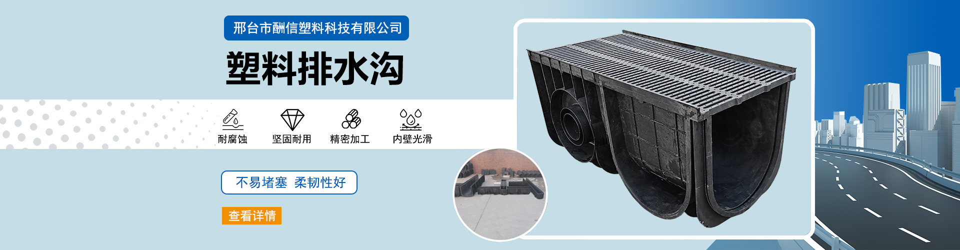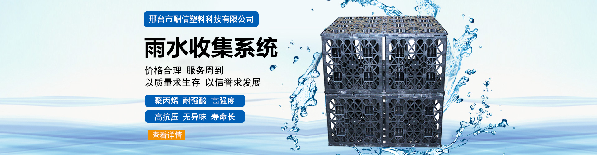 邢台市酬信塑料科技有限公司是一家专业设计、 生产、安装海绵城市雨水收集系统的环保企业,同时也是一家集PE化粪池、HDPE线性排水沟、坐便器、蹲便器及高压冲厕器的科研、设计、生产、销售于一体的环保设备生产企业。公司以攻克世界的前沿课题为己任,运用先进的生产工艺,致力于优质产品的研究开发。